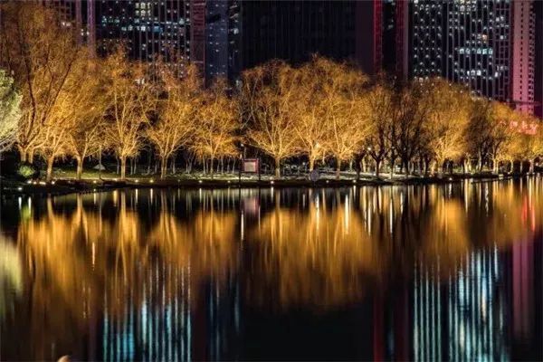 或者可以围着旁边的天鹅湖走一走,彩色灯带更是照亮了天鹅湖的美。