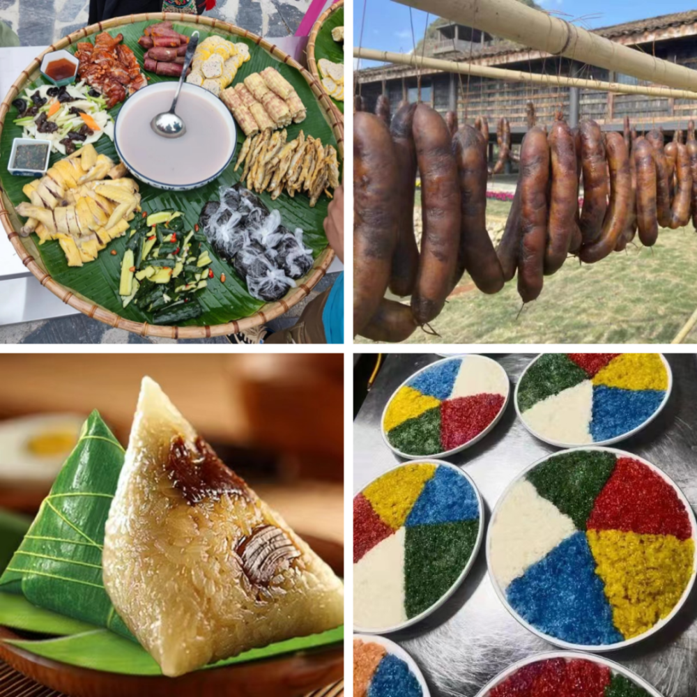 纯植物染色寓意多彩生活的五色糯米饭,从里到外都带着浓浓香味;万水千山粽是情,糖馅肉馅啥都行,软软糯糯中夹带着叶子的清香,可盐可甜;细嚼土猪腊味,享受阳光味道、享受乡村味道,更享幸福年味;白色如云黄似金,万事如意年年高,那一口无法忘怀的年糕美食,始终是最令人魂牵梦萦的。更有忆苦思甜红军餐,让人珍惜来之不易的美好,亦或生一炉烟火,围一方天地,轻煮岁月慢煮茶,亲朋闲坐,最是人间共清欢。三餐四季,尝不尽的美食,最抚凡人心。