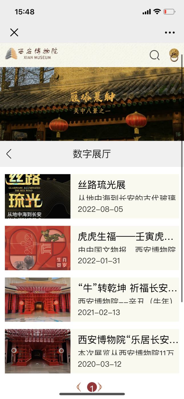 进入西安博物院官方公众号选择数字展厅就可以VR全景感受从地中海到长安的古代玻璃艺术,观看虎虎生福——壬寅虎年新春生肖文物(图片)联展等。