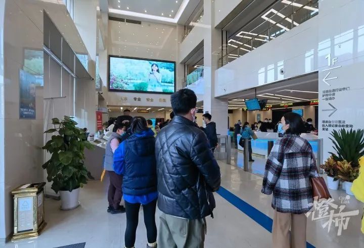 昨天是2023元旦假期后开工的第一天,位于上城区婺江路的杭州市公安局出入境接待大厅内门庭若市,咨询服务台的队伍绵延不绝,大厅内办理港澳通行证的人排起长队,就连门口保安说院内的停车位都满了……