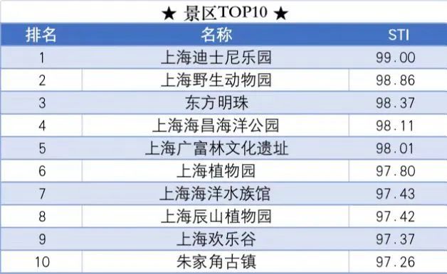 “最上海”旅游指数(2022年度)首次发布。本次评估最终生成总榜和多个特色及专项榜单,其中,景区的TOP10如下 看看你有去打过卡吗?