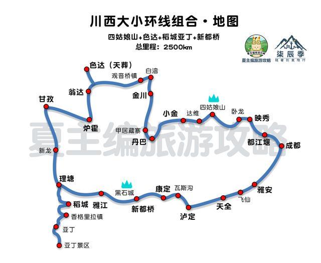 川西旅游,主要的旅游线路是:川西大环线、川西小环线、直达稻城亚丁、泸亚线(泸沽湖—稻城亚丁)等。