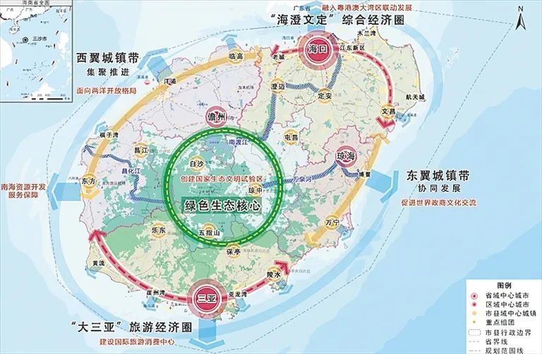 南北两极带动:以海口和三亚为核心,构筑“海澄文定”和“大三亚”两大经济圈。