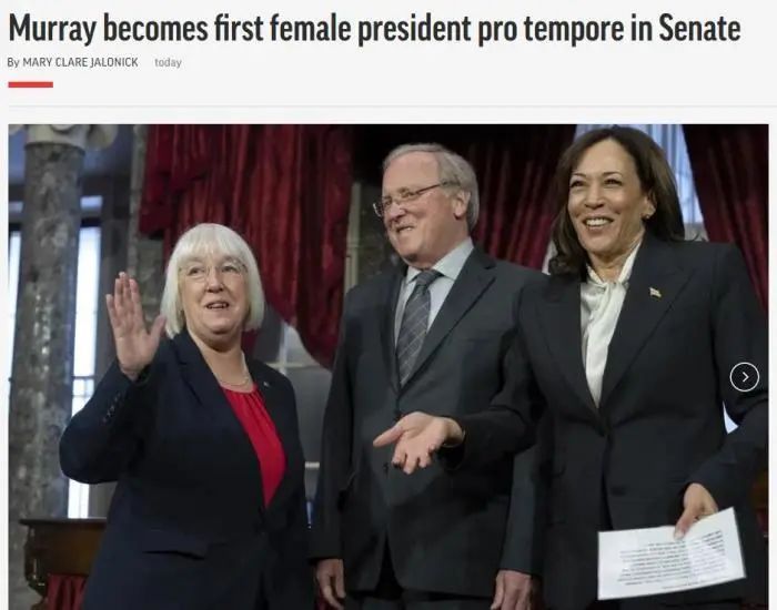 当地时间3日,来自华盛顿的民主党籍参议员帕蒂·默里成为美国史上首位女性参议院临时议长。美国《国会山报》称,默里也由此成为仅次于美国副总统和众议院议长的美国总统第三顺位继承人。