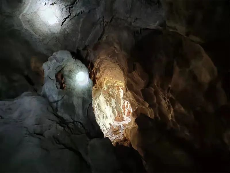我想到了芒景村丙抗组的大硝洞。那是一个天朗气清的日子,我和三五好友相约攀登这座充满神秘的大岩洞,由于岩洞位置接近山顶,路途可谓崎岖险阻,爬到山顶时大家都已气喘吁吁。当我们来到洞口时,一股凉风吹出来为我们“降温”,进入岩洞以后更像是置身于一间“空调房”,瞬间将身上的疲惫一扫而光。岩洞内的石头奇形怪状,更有一块挂在石壁上的石头,仿佛内部被掏空,如果用石块敲打它便会发出“哐哐哐”声,声音在空旷的岩洞内回荡,顿时空谷传响,久久不绝。