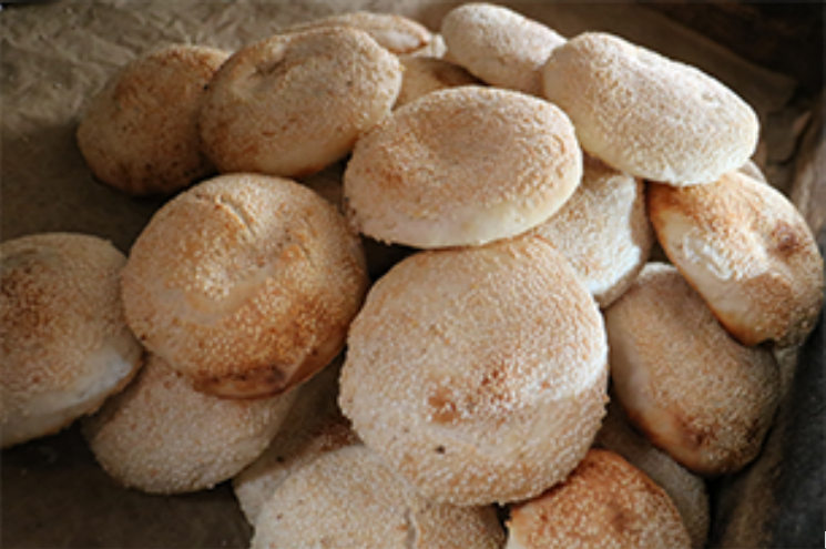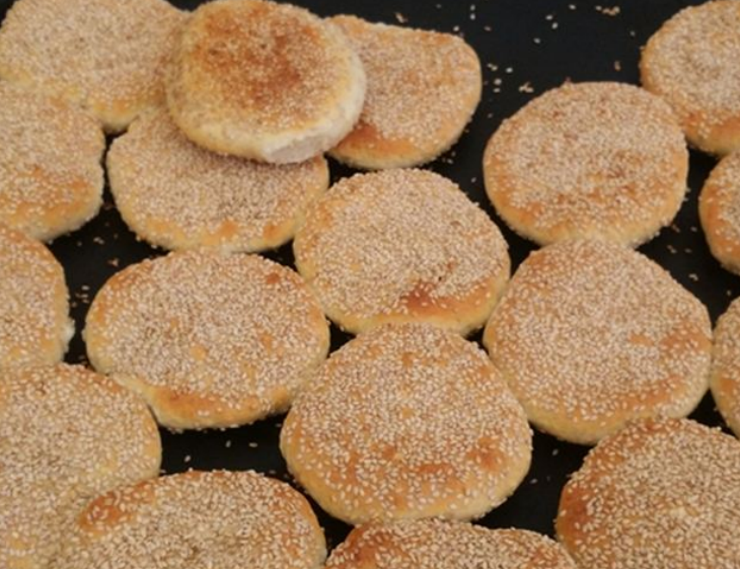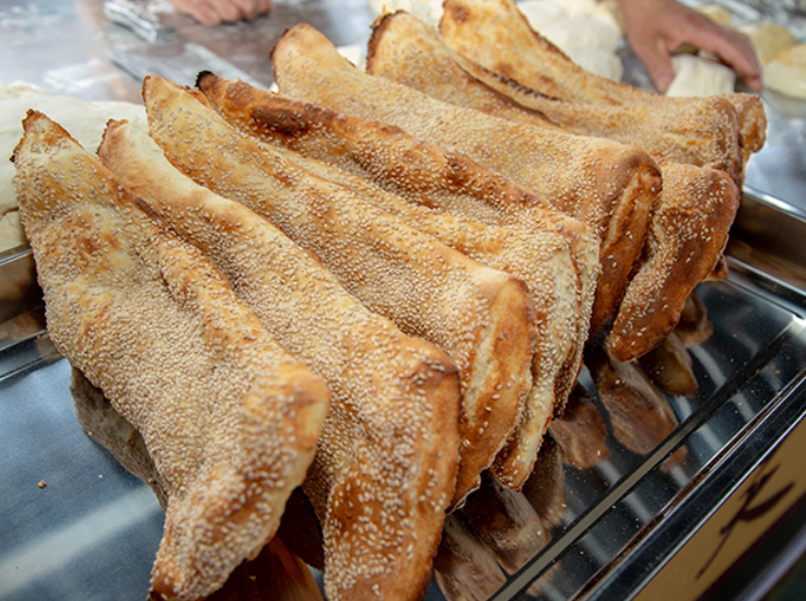 4.岳口皇尝饼:皇尝饼是岳口镇传统早点品种,相传因宋代皇帝赵匡胤品尝而得名。皇尝饼用特制天炉烤制,里包肉馅,外敷芝麻,香鲜味美,再加上底壳焦脆爽口,易于保存,深受食客喜爱。