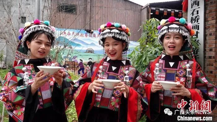 都安县瑶族姐妹手捧美酒迎宾客。高东风 摄