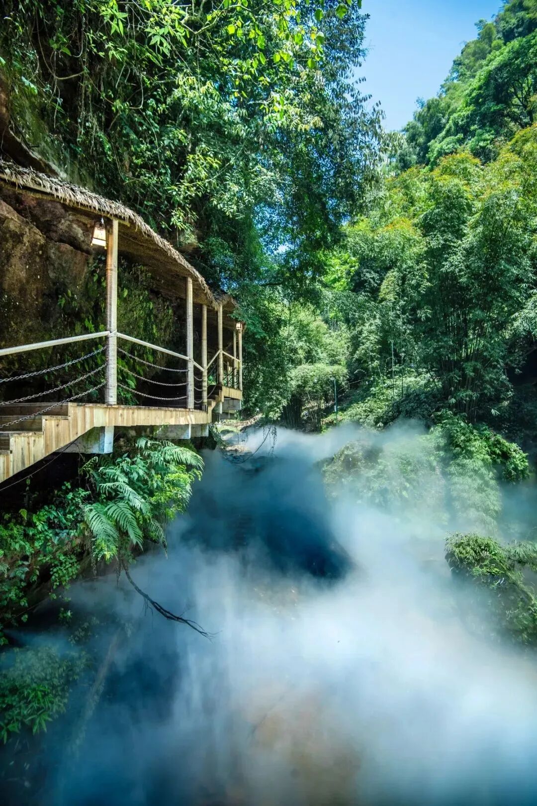 林间,滴答滴答泉水化作云雾,游荡在栈道旁,一丝一缕,仿佛将整个深谷包围,沁人心脾。
