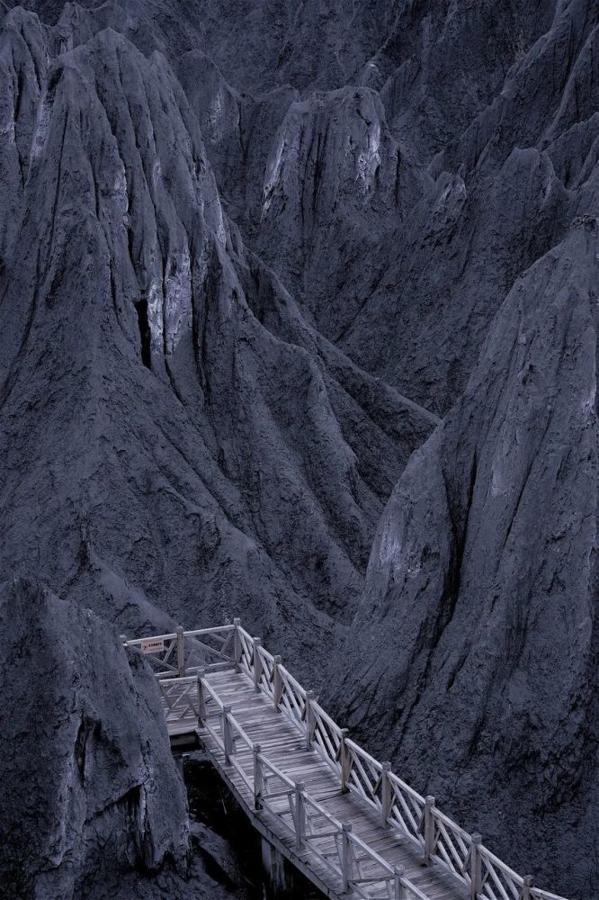 你或许见过银白的雪山,或许见过被绿树环绕的青山,或许见过层林尽染的彩山,但是你见过墨色的山么?