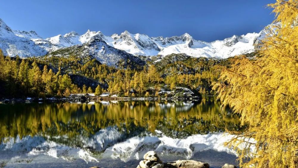 雪山绵延不绝,倒映在清澈的海子当中,竟也会让人分不清哪里是天哪里是地。
