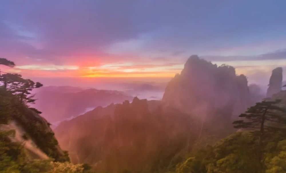 三清山上的日出日落也是叹为观止的美景之一,千万别错过哦!日出的万物新生,日落的朝霞璀璨……天地万物都被渲染成灿烂的世界。三清山的日出日落见证一天的消逝与开始,见证我们的时光之旅~