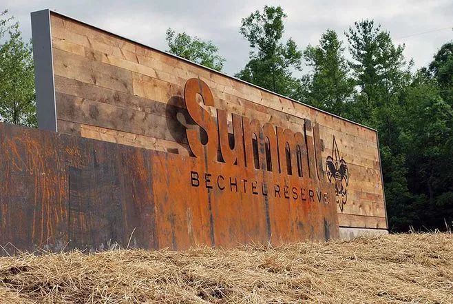 材质与环境相和谐,自然风景区标识的材料选择尽量使用实木、仿木、石材等材料。
