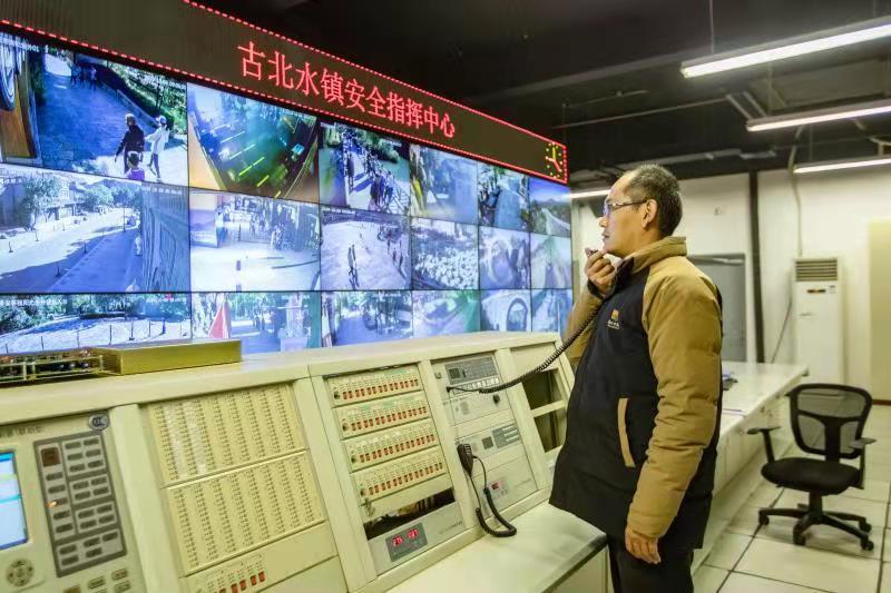 ▲ 工作人员在北京古北水镇安全指挥中心做好景区监控、调度等工作