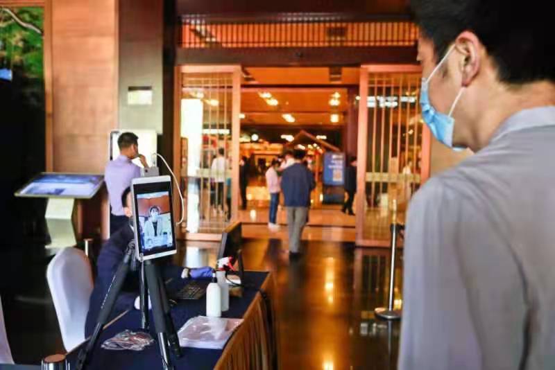 ▲ 游客进去古北水镇景区前,进行自动测温。