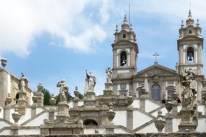 山顶耶稣朝圣所(Santuario do Bom Jesus do Monte)有童话般的喷泉、极美的景色,还有一段不同寻常的阶梯,你可以从那里拾级而上(朝圣者有时会用膝盖跪拜而上),也可以乘坐缆车。