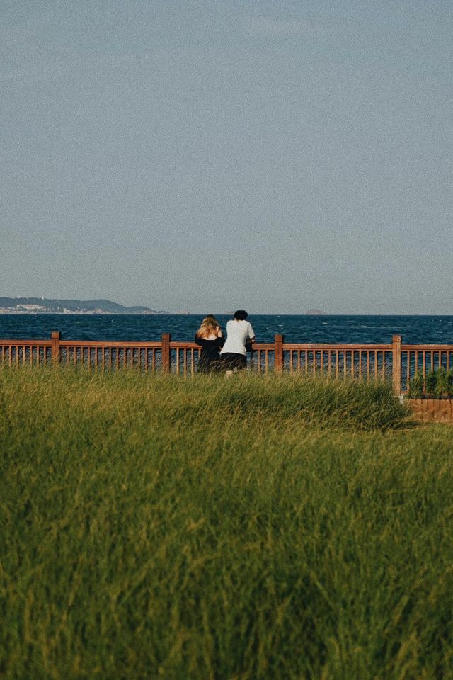 寻一个晴天,漫步在沙滩,抬眼看见白色的观景台,拾级而上,目之所及皆是大海,细细看去,温暖的阳光照耀在海面上,铺满了温柔的金色软光,微风一吹,泛起粼粼波光,美妙极了!