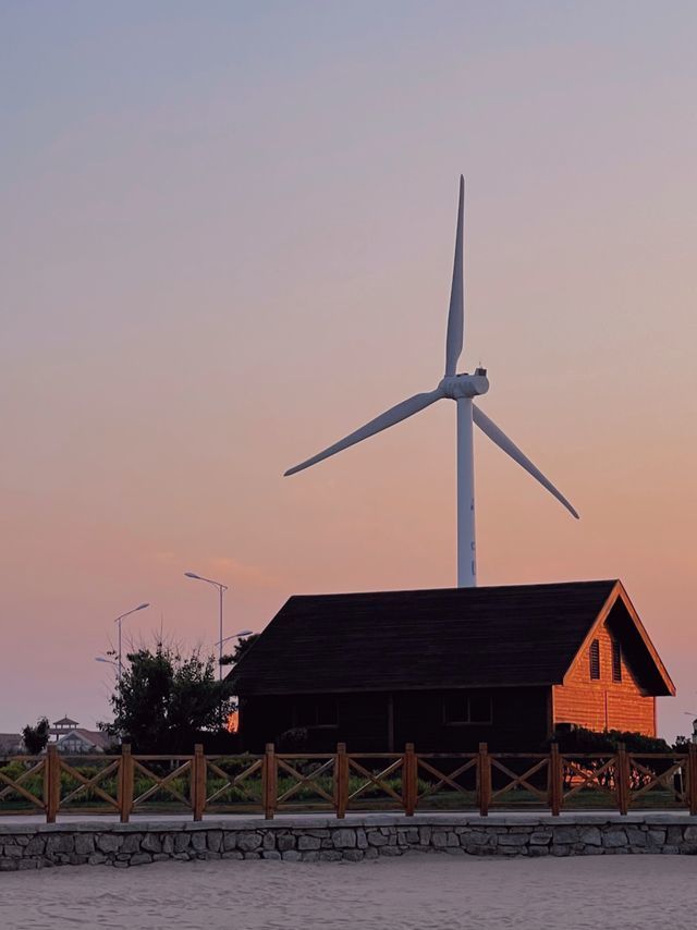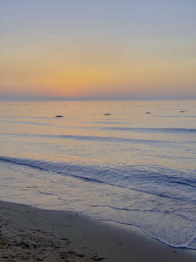 潍坊的欢乐海沙滩,平缓宽阔、风景秀丽、浪稳水清、沙细滩软,超级适合带娃自驾游哦~
