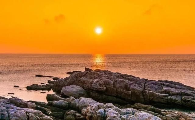 大海、日出、日落就是浪漫的名词,一个人安静地坐在礁石上、沙滩上,看着来往的人,看沙滩的碎石,看着太阳从光明一点点变成橘子色,染红整个沙滩,晒在波光粼粼的海面上,这也不失一种浪漫。