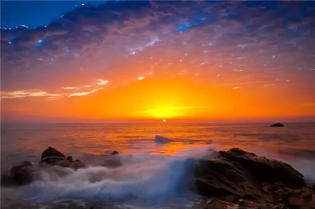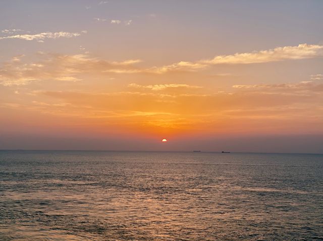 一定要到万平口看日出,日出之时,大片的朝霞在云层间若隐若现,周边的云朵都染成了金色的黄边,海水波光粼粼倒映着太阳。目之所及,犹如油画般厚重感,美得不可思议。