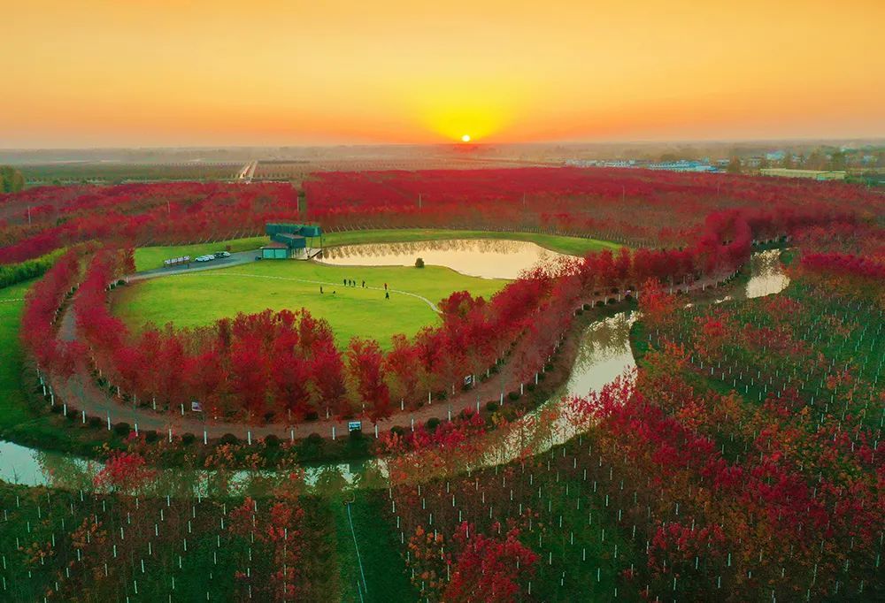 徐州红枫公园占地约1万亩。以种植彩色树种为主,植物繁茂,空气清新,环境优美,是“城市天然氧吧”。深秋时节,60余万株枫树被红色覆盖,色彩缤纷的田园风光吸引众多游人看叶赏景,领略“树”造多彩世界,“叶”摹田园风情的美景。