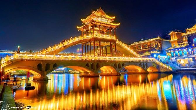 【下午】结束张家界快乐之旅,出发凤凰古城,抵达凤凰,自由活动,欣赏灯火阑珊的凤凰夜景,《泛舟夜游沱江》零距离观赏凤凰沱江两岸夜景。