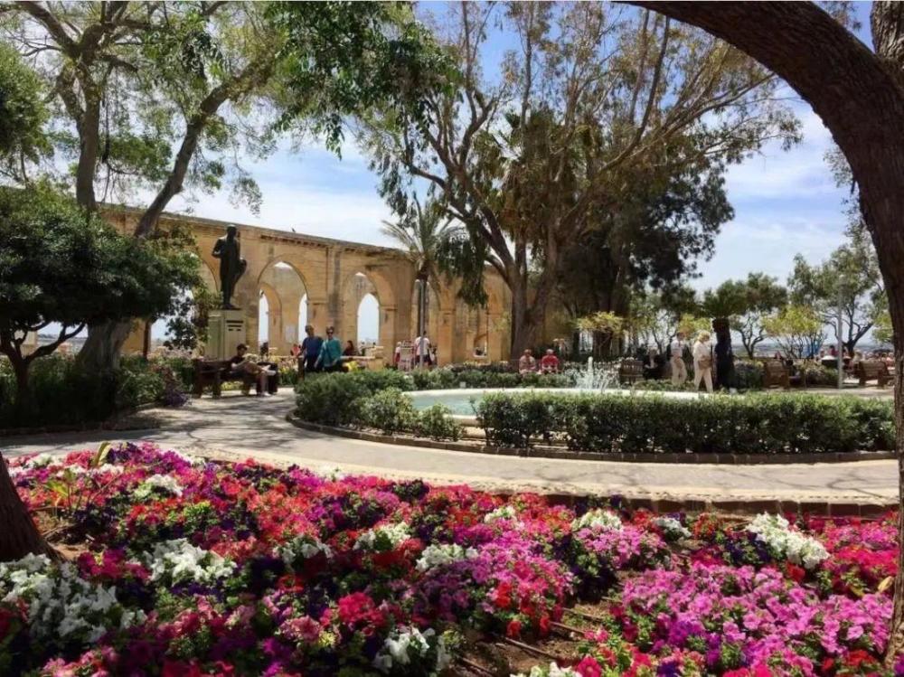 最美人间四月天,当然要感受繁花似锦,寻觅满园春色。位于瓦莱塔的上巴拉卡公园(Upper Barrakka Garden)是不错的选择,花季来临时,中心喷泉的小广场被粉紫色的花朵环绕,花丛前伫立着明黄色的拱门建筑,随手一拍都无比明艳。