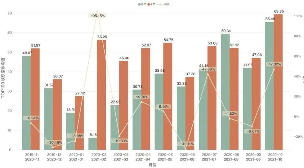 ▲TOP100欢乐指数均值趋势图