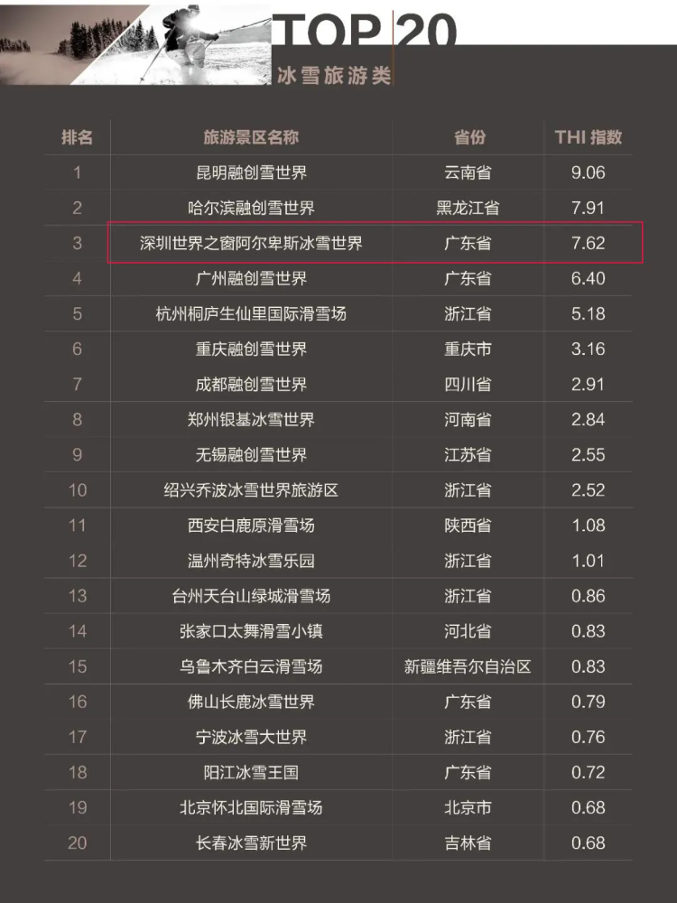▲2021年11月中国冰雪旅游类旅游景区欢乐指数(THI)排名