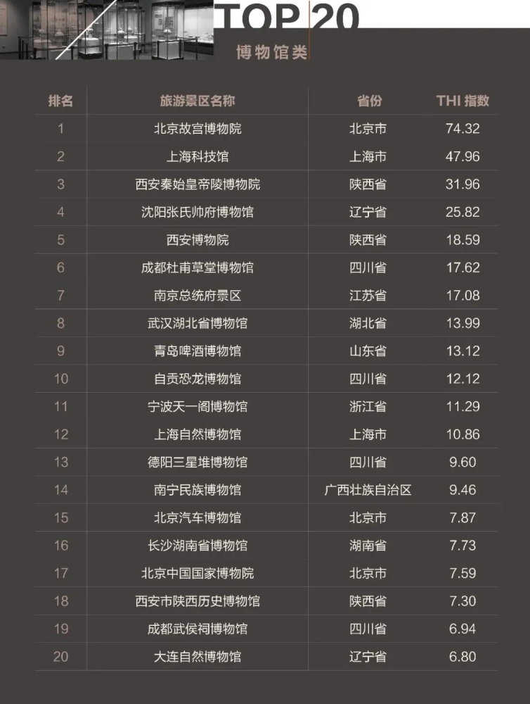 ▲2021年11月中国博物馆类旅游景区欢乐指数(THI)排名