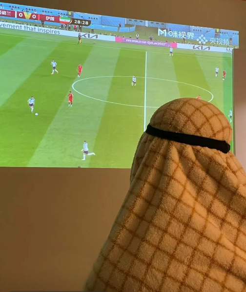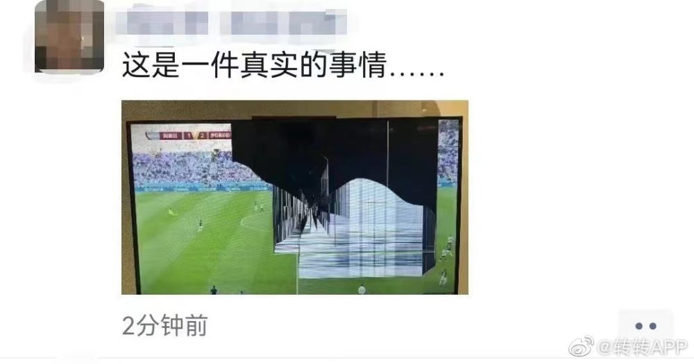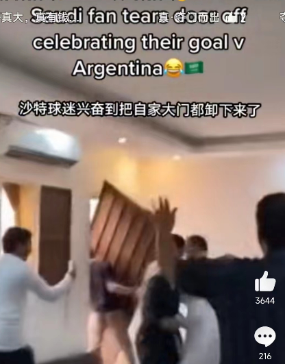 沙特取胜后,电视机前的球迷激动地把自家门给卸了。