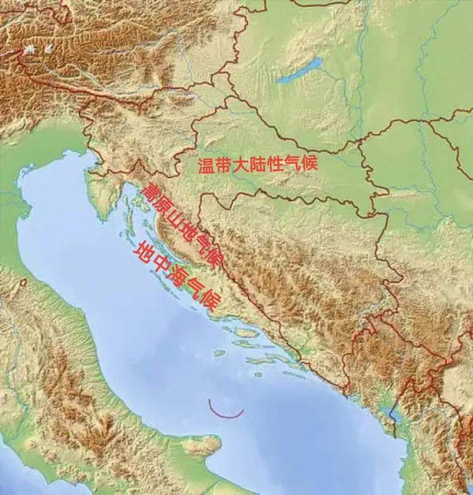 克罗地亚北部为温带大陆性气候,四季分明,夏季温和,7月份平均气温18~22℃,冬季寒冷,气温低于0℃;中部和中南部为高原山地气候,夏季凉爽,气温不超过18℃,冬季严寒且降雪频繁,平均气温低于零下2℃;南部和西南部海岸为地中海式气候,夏季炎热干燥,平均气温超过22℃,冬季温和多雨,气温在0℃以上。