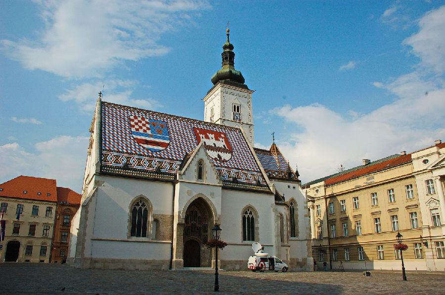 圣马可教堂 位于圣马可广场中心,始建于13世纪。教堂内部雕刻精美、图形各异。圣马可广场东侧为克罗地亚议会,西侧为克罗地亚政府所在地。