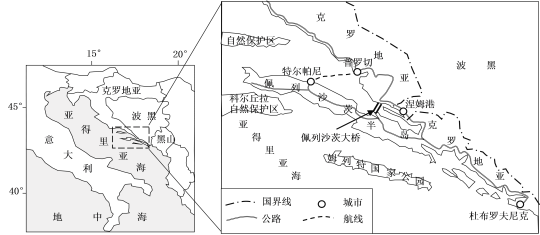 (1)说明大桥通车前,克罗地亚本土与杜布罗夫尼克地区民众往来困难的原因。