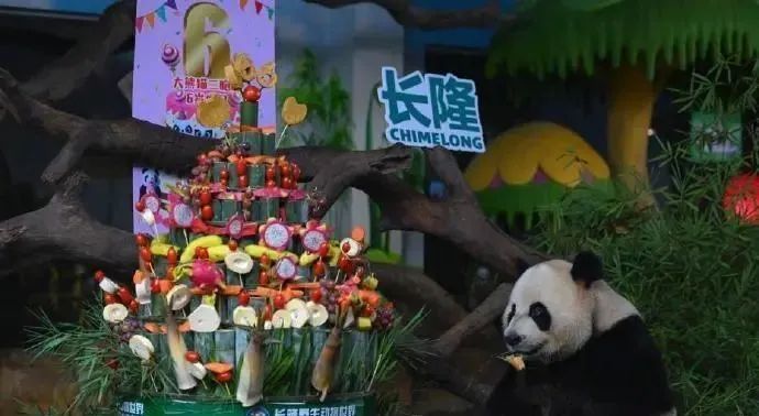 7月29日,在位于广东省广州市的长隆野生动物世界内,三胞胎之一的大熊猫“帅帅”品尝特制生日蛋糕。当日,全球唯一大熊猫三胞胎“萌、帅、酷”迎来6岁生日。