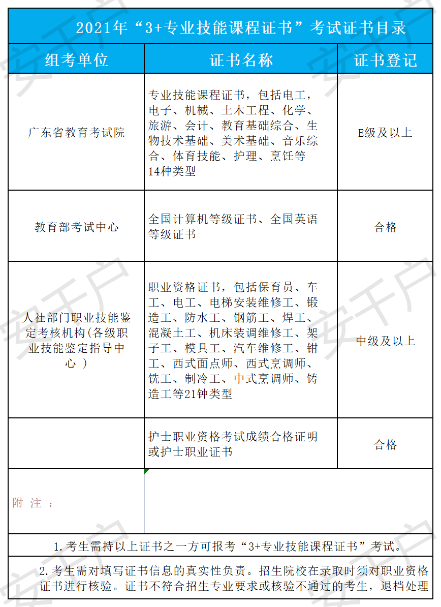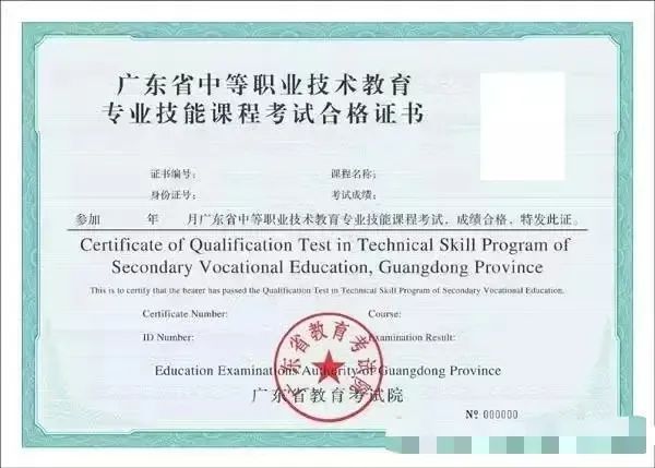 (1)广东省教育考试院组考和颁发的14种专业技能课程证书。