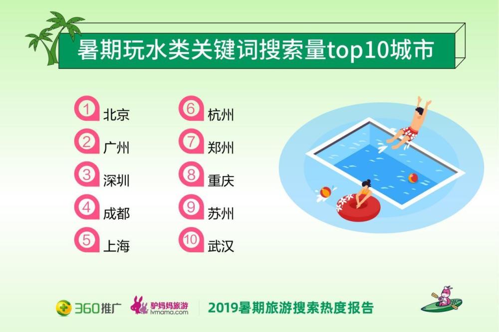 在玩水类关键词搜索量TOP10城市中,成都排名第四。