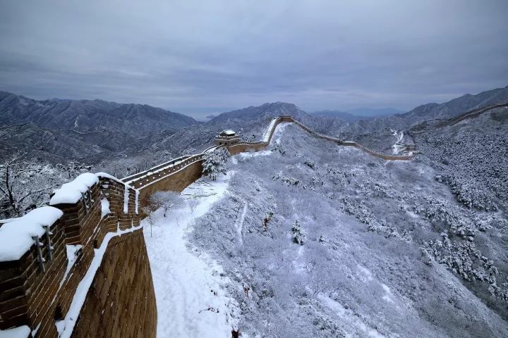 冬天的长城是萧瑟的,没有了春夏的绿,秋日的绚烂,只有光秃秃的枝丫,可你是否知道,只有这时,它才更像是一幅画,一幅大气磅礴的北国风光图。