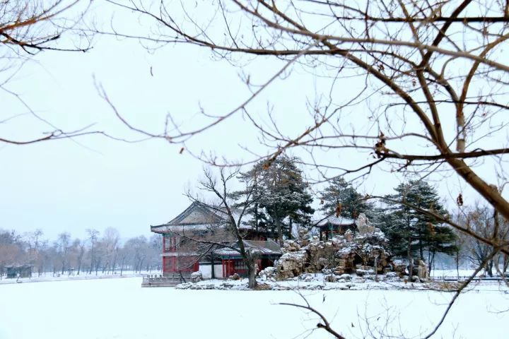 冬日的避暑山庄,略显寒冷,小桥流水映细柳,清雪回廊落肩头,那迷离的风景,在这寒风中更显意境。
