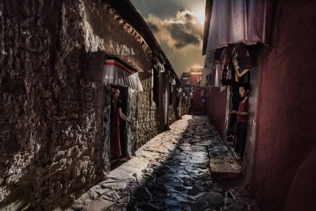 红色的僧袍,白白的高墙,苍茫的大地上,佛音渐起,那是最祥和的声音。