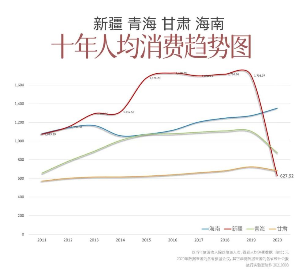 实际情况确实如此,2019年新疆旅游人均消费为1703元,而到了2020年只有627.92元,我没记错的话,这应该是全国最低了。即便是有统计误差,实际的情况也很不容乐观。