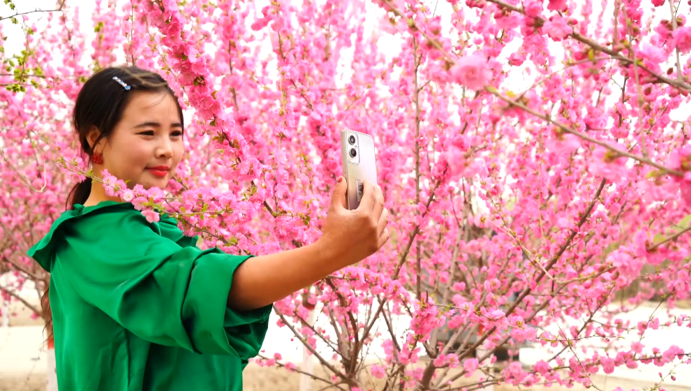 乔世芬说:“来到麦盖提,不仅见识到了让我心心念念的沙漠风景,没想到这里的春日也这么美丽,桃花、杏花、梨花、海棠花,无不让人赏心悦目、流连忘返。这次的游玩,让我感觉不虚此行,以后会推荐亲戚朋友都来麦盖提游玩。”