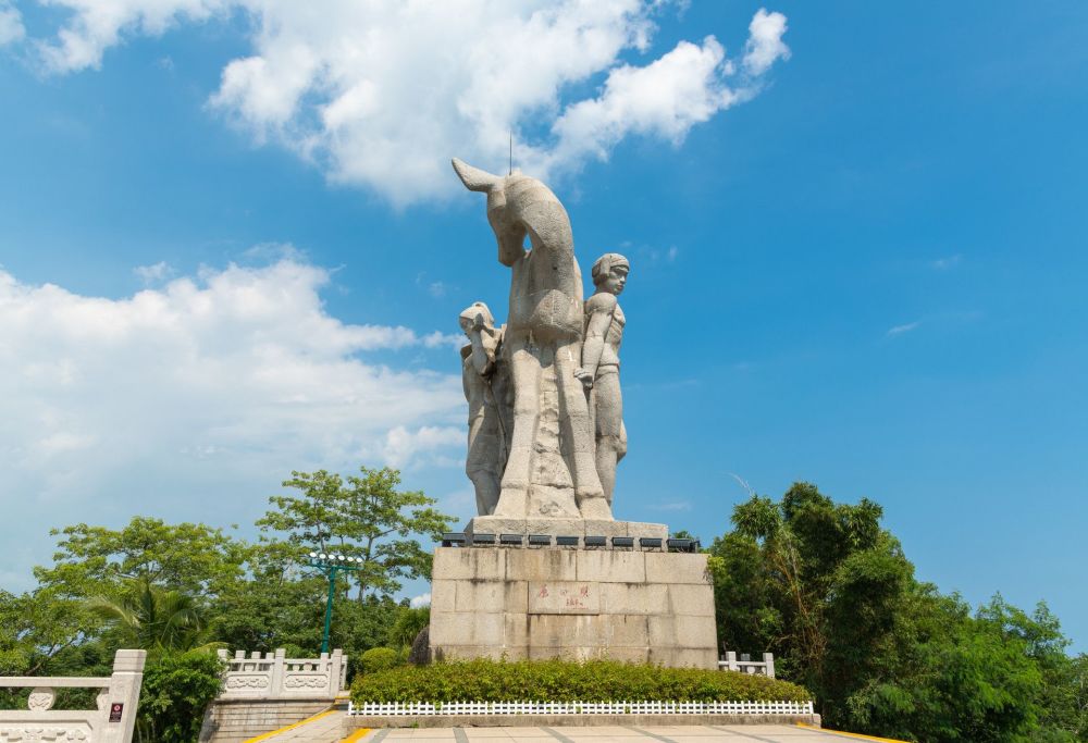 鹿回头景区位于三亚湾,距三亚市区约6千米,是一座伸向南海的山头。传说在远古时代,一位勤劳英俊的黎族青年猎手,在这里打猎时幸遇一只山鹿,便紧追不舍,追至海边正欲拉弓,山鹿突然回头,化作一美丽少女,与他结为连理,定居此地。“鹿回头”便由此得名。现山顶立有青年猎手和回首梅花鹿的石雕像一尊。这里紧临南海,空气清新,别有一番椰风海韵。