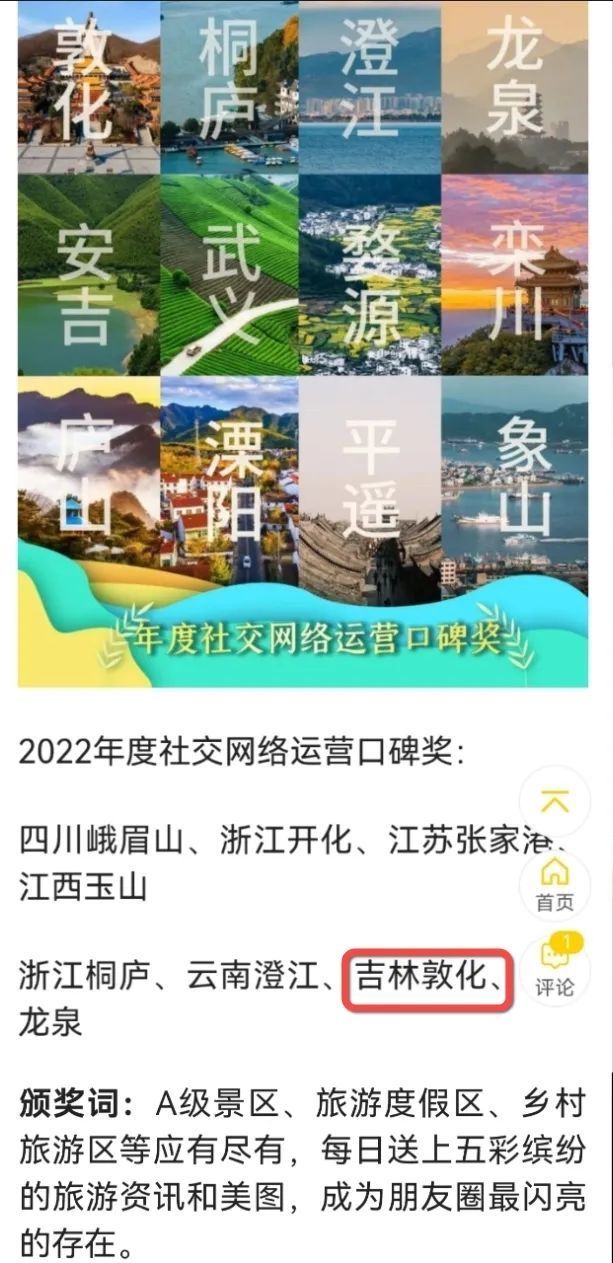 手机访问:wap.265xx.com开门红!敦化市入选2022年县域旅游影响力TOP100