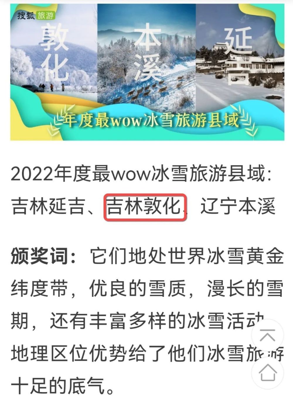 2022年度最wow冰雪旅游县域:吉林敦化。