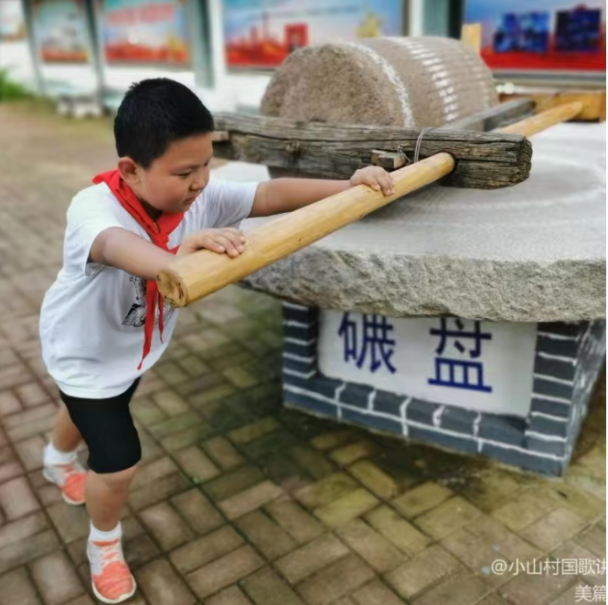 小山村国歌讲习所陈列几十件抗战时期的老物件,有碾盘、磨坊、铁犁、手推车、鼓风机、铡刀、煎饼烙子等。收藏有至今在锦州地区流传的几首歌谣,传颂锦州人民在抗日战争时期做出的巨大贡献。