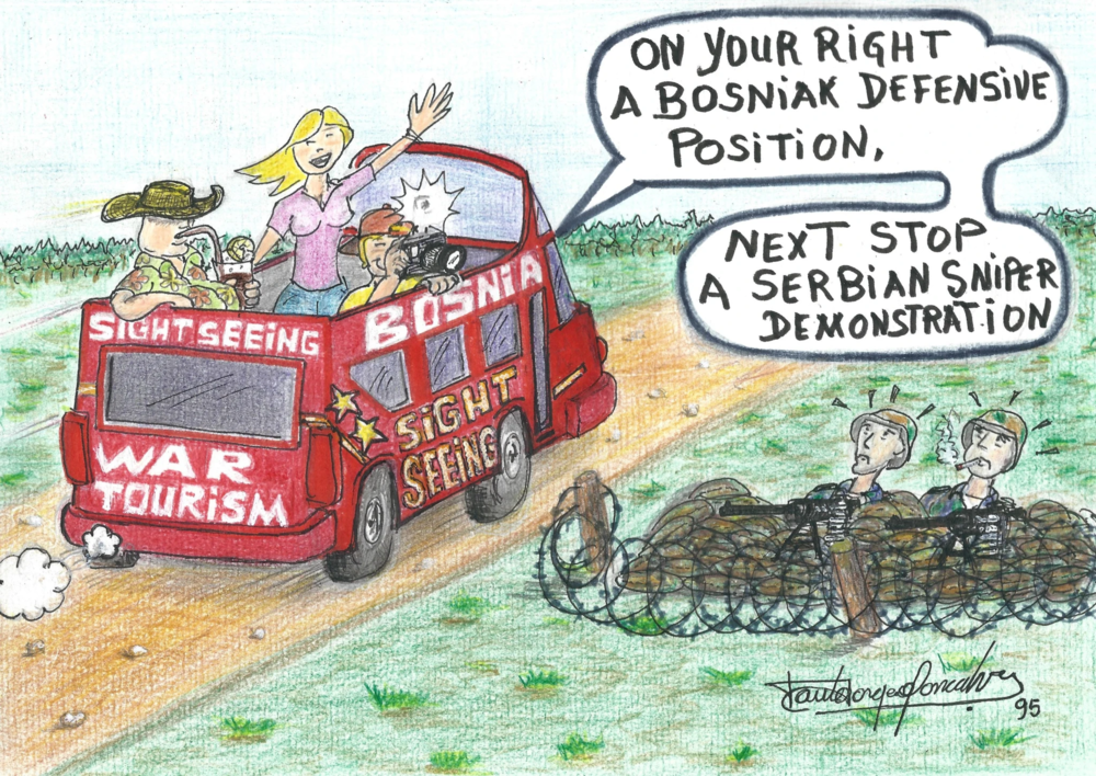 而战乱国的邻国也在努力的发着战争财,他们组织游客前往一切可以观看到战争的“相对安全地点”,举着望远镜和长焦单反,等着真枪实弹的“表演”,这可比刚刚逛过的巧克力工厂好玩多了。