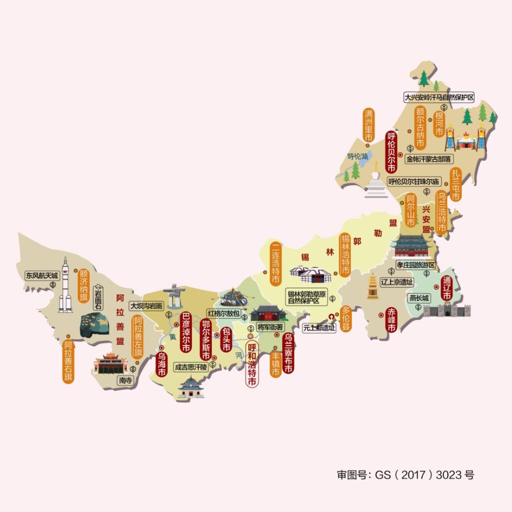 △内蒙古自治区是我国最早成立的少数民族自治区,资源丰富,有“东林西矿、南农北牧”之称,是我国最大的草原牧区。内蒙古拥有浓郁的草原风情和深厚的人文底蕴,是“中华第一龙”红山文化玉龙的出土地,有锡林郭勒草原、额济纳胡杨林、元上都遗址等风景名胜。辖呼和浩特、包头、乌海、赤峰、通辽、鄂尔多斯、呼伦贝尔、巴彦淖尔、乌兰察布、兴安、锡林郭勒、阿拉善等12个地级市、盟。