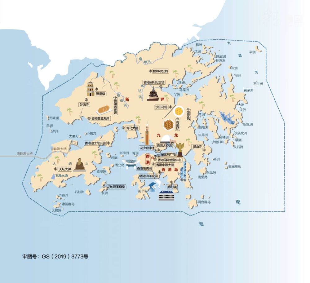 △香港由香港岛、九龙半岛、新界以及其他离岛组成。香港是全球第三大金融中心,是亚太地区联络东南亚和欧洲、美洲、大洋洲的枢纽,出口加工、商贸、金融业发达,有“东方之珠”“旅游购物天堂”之称。主要景点有尖沙咀、金紫荆广场、沙田马场等。