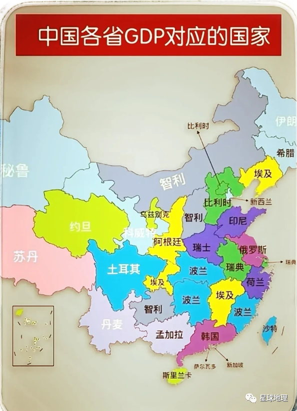 自改革开放以来,我国经济快速发展,这是目前为止各省GDP对应的国家