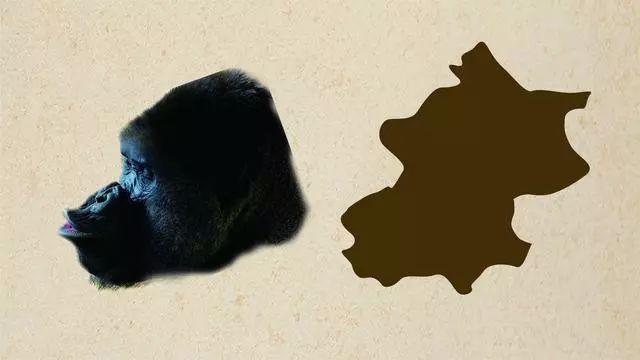 北京地图像一个猩猩的头,深深的眼窝,撅着嘴。